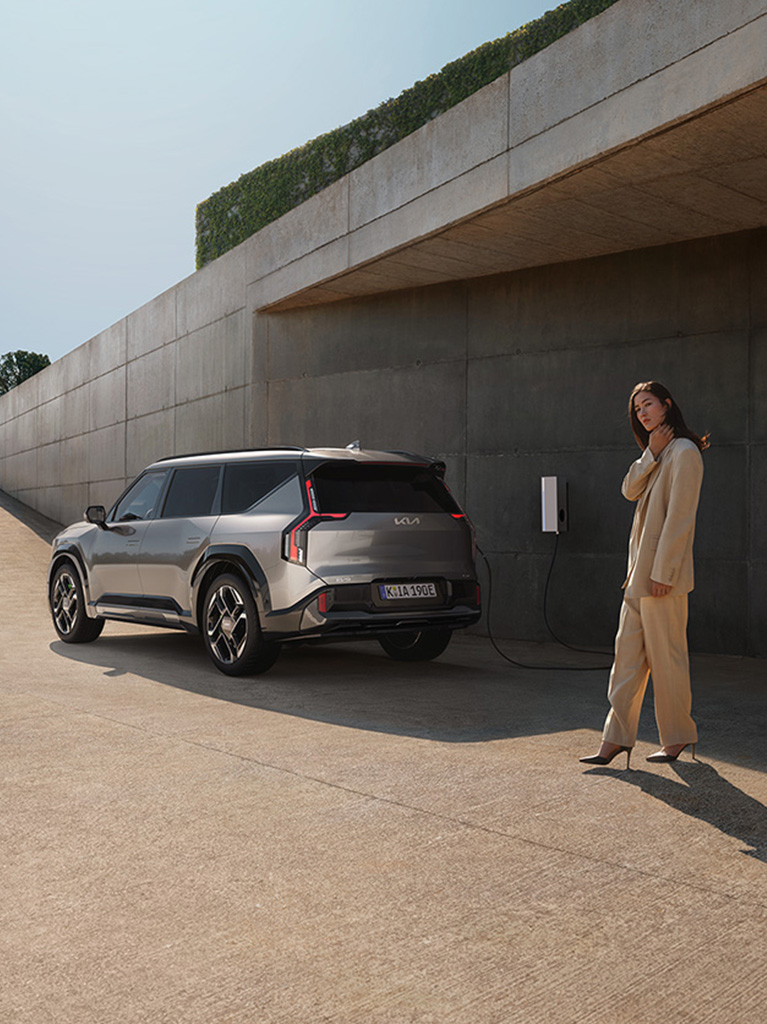 Einfaches Laden zu Hause über eine Wallbox – so kannst du deinen Kia EV9 GT bequem, unkompliziert und kosteneffizient mit Energie versorgen.